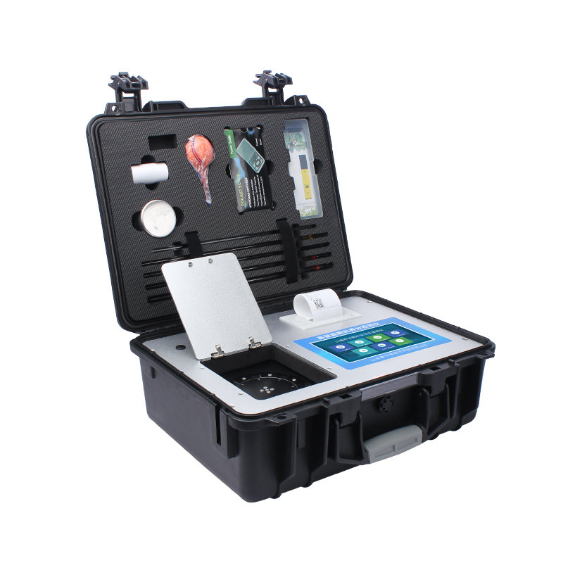 4. 产品用途:集药、仪、器于一体,配备进行规定项目化验必需的全部装备,可独立在乡、村或实验室进行土壤肥料碳氮比及土壤养分(铵态氮、硝态氮、有效磷、速效钾等)、肥料养分、重金属等项目的快速测定,直接打印检测结果,为科学配方施肥提供指导